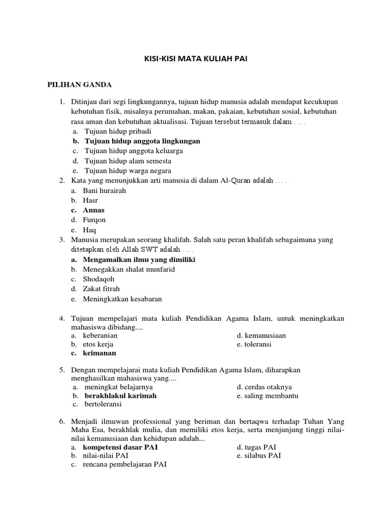 Kisi Kisi Soal Pendidikan Agama Islam Doc Jawabanku Id from 0.academia-photos.com Soal pilihan ganda agama islam perguruan tinggi. Check spelling or type a new query. Maybe you would like to learn more about one of these? We did not find results for: